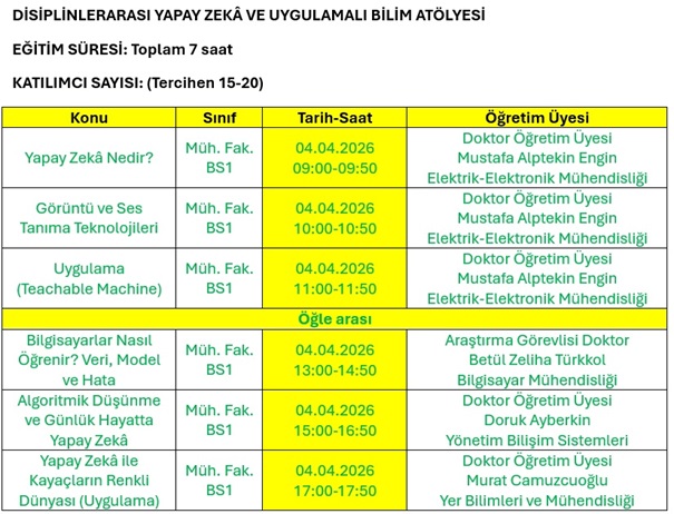 Matematik Atölyemizin çalışmalarına dahil etmiş bulunuyoruz. Program Bayburt Üniversitesi Mühendislik Fakültesi’nin laboratuvar ve öğretim üyelerinin desteğiyle aşağıdaki gibi uygulanacaktır. Selam, sevgi ve saygılarımızla…